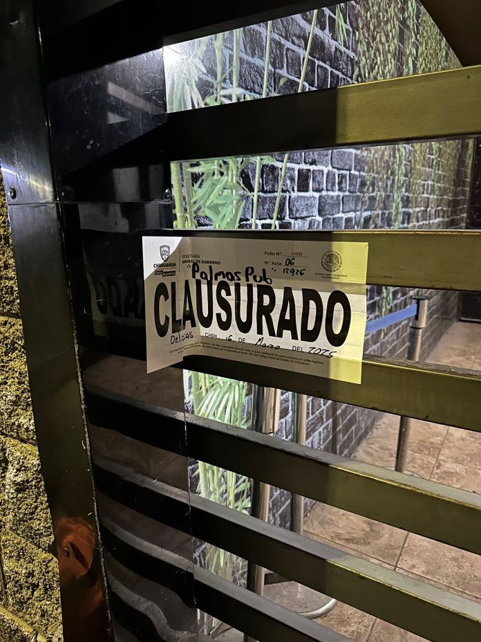 Clausuró Gobernación Estatal ‘Palmas Pub’ en Delicias por permitir consumo de alcohol a menores