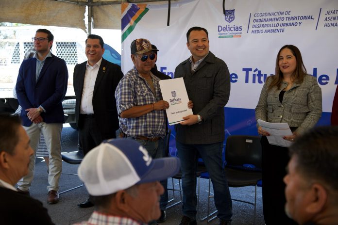 Delicias.- “Protege tu patrimonio y protege a tu familia, dirían los abuelos”, expresó el presidente municipal de Delicias, Jesús Valenciano García, durante la entrega de 30 Títulos de Propiedad a familias de diversas colonias del municipio. Este esfuerzo se logró gracias a la colaboración entre Gobierno Municipal de Delicias y Gobierno del Estado garantizando certeza jurídica a quienes han esperado por años la legalización de su hogar.