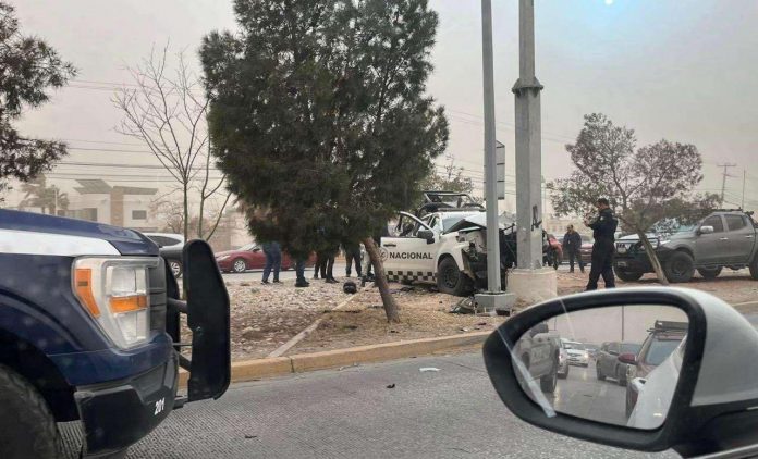 Ciudad Juárez.- Un incidente ocurrió en la avenida Ejército Nacional y Puesta del Sol, donde perdieron la vida tres elementos de la Guardia Nacional.