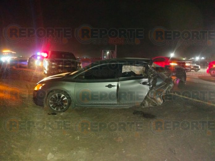 Delicias.- La noche de este jueves, un aparatoso accidente se registró en la carretera federal número 45, donde un vehículo Nissan Sentra en color gris chocó contra un quinta rueda estacionado a un costado del camino. El incidente ocurrió a la altura del kilómetro 128 en sentido de sur a norte, minutos antes de las 9 de la noche.
