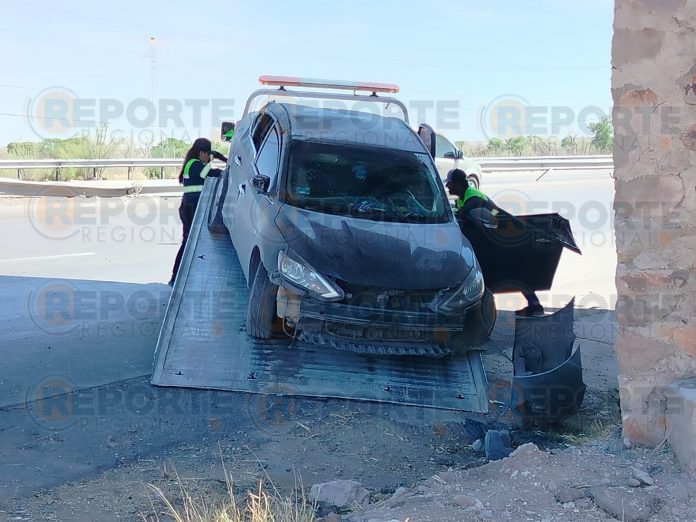 Delicias.- Un accidente vial ocurrido en la carretera federal, a la altura del puente del panteón de Meoqui, dejó una persona lesionada y la pérdida total de un automóvil Nissan Sentra color gris.