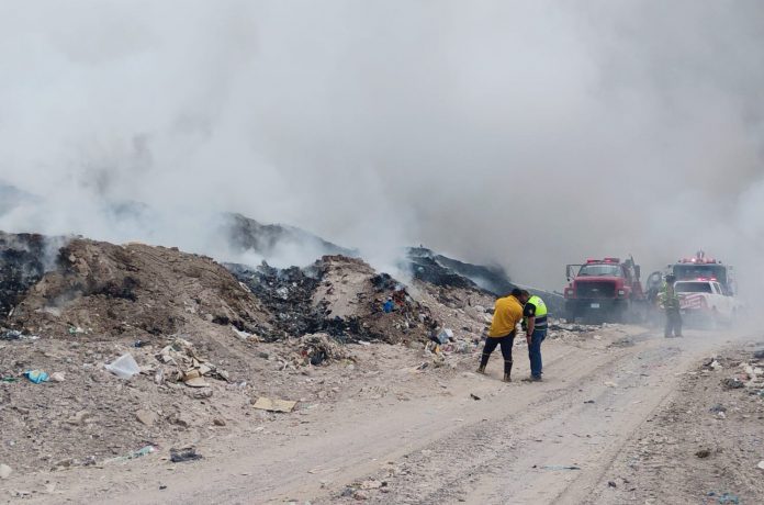 Meoqui.- El pasado fin de semana ocurrió un incendio de grandes dimensiones en el Relleno Sanitario Regional ubicado en la comunidad de Nuevo Loreto, en el municipio de Meoqui, activando rápidamente la alerta de los H. Cuerpos de Bomberos de 5 municipios: Meoqui, Delicias, Rosales, Julimes y Saucillo, así como Gobierno del Estado, Juntas de quienes después de más de 17 horas, lograron controlar el fuego, continuando con los trabajos de remoción de basura con maquinaria pesada para sofocarlo en su totalidad.