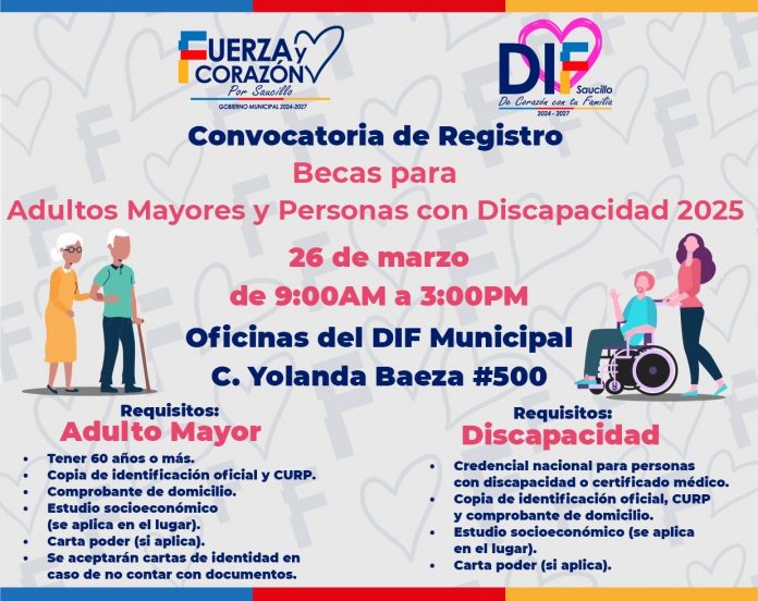 Saucillo.- La presidenta del DIF Municipal, Verónica Villanueva Hernández, anunció el lanzamiento de la convocatoria para el registro de becas dirigidas a adultos mayores y personas con discapacidad, buscando brindar apoyo a los sectores más vulnerables del municipio.