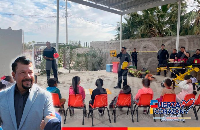 Saucillo.- Como parte de las estrategias de seguridad y prevención que impulsa el Gobierno Municipal de Saucillo, encabezado por el alcalde Fito Gardea, a través del departamento de Prevención Delictiva, se llevan a cabo los programas Escuela Segura y Policía Amigo en diferentes instituciones educativas del municipio.