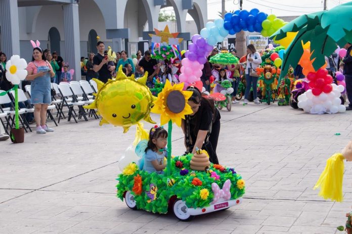 Meoqui.- En el marco del inicio de la primavera, padres, maestros y alumnos del Jardín de Niños Cuauhtémoc realizaron un pequeño Festival en la explanada de la Presidencia Municipal de Meoqui, donde realizaron un desfile, un concurso conmemorativo con disfraces y vehículos decorados y una kermes con el objetivo de recaudar fondos para su institución, en el cual, el Gobierno local brindó apoyo al plantel con mobiliario y logística de vialidad.