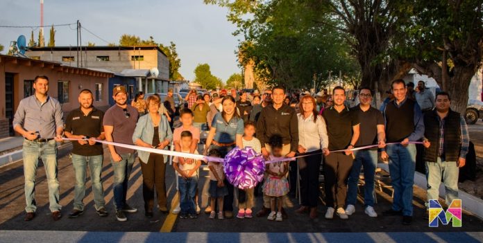 Meoqui.- La alcaldesa de Meoqui Miriam Soto, realizó la inauguración de la calle 1a Oriente en la comunidad de Nuevo San Lucas, donde además se realizaron trabajos de rehabilitación de drenaje y tuberías de agua por parte de la JMAS, la cual cuenta con una inversión de cerca del millón de pesos.