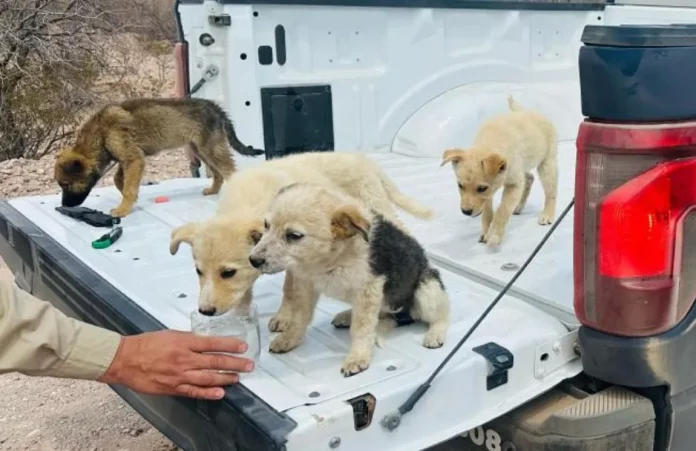 Rescataron a cuatro cachorros abandonados en un camino rural en Chihuahua