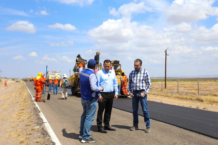 Supervisa Jesús Valenciano trabajos de pavimentación en carretera Delicias-Naica