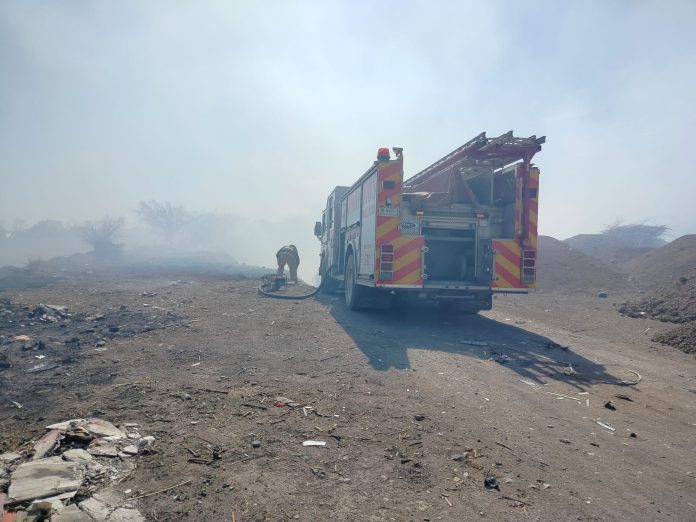 Delicias.- Este sábado, un incendio en un basurero clandestino ubicado en la colonia Altavista, en Delicias, ha generado una densa columna de humo que afecta a los habitantes del sector. El fuego inició alrededor de las 14:30 horas y ha sido combatido por el Departamento de Bomberos durante cerca de dos horas.