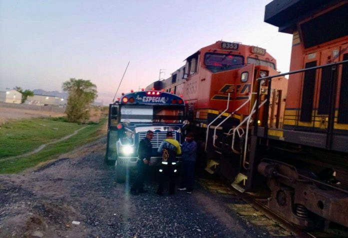 Ciudad Juárez.- Un accidente ferroviario dejó un saldo de 9 obreros de maquila lesionados cuando un camión de transporte de personal fue arrastrado por el tren.