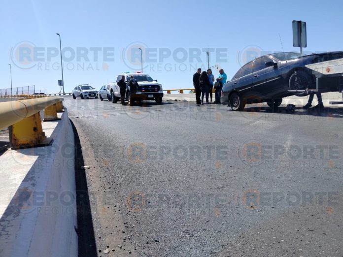 El accidente ocurrió cuando el automóvil descendía del puente, y la conductora perdió el control del volante, colisionando contra la estructura de concreto. De las tres personas a bordo, dos resultaron heridas: una con dolor en las costillas y la otra con un golpe en la frente. Fueron atendidas por paramédicos de la Cruz Roja Mexicana y trasladadas a un hospital para evaluación médica.