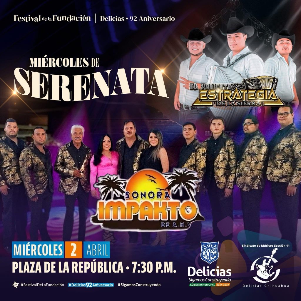 Posteriormente, a partir de las 7:30 de la noche, se celebrará el tradicional “Miércoles de Serenata” con la participación de El Pariente y su Estrategia de la Sierra y Sonora Impakto, quienes pondrán ritmo y alegría al corazón de la ciudad con música en vivo para toda la familia.