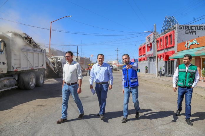 Delicias.- El presidente municipal Jesús Valenciano realizó una supervisión de los trabajos iniciales de pavimentación en la calle Primera Norte, ubicada en la zona Centro de Delicias, acompañado por el director de Obras Públicas, Alfonso Rodríguez, y el regidor Mario Alberto Mata Licón. La obra forma parte del compromiso del Gobierno Municipal de seguir rehabilitando vialidades clave para la movilidad y el desarrollo urbano.