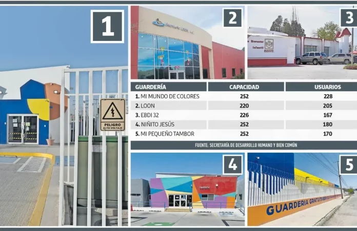 La Secretaría de Desarrollo Humano y Bien Común, por separado, indicó que se trata de los centros de atención infantil Loon, Niñito Jesús y Mi Pequeño Tambor, además de Mi Mundo de Colores y de la Estancia de Bienestar y Desarrollo Infantil (EBDI) 32 del Instituto de Seguridad y Servicios Sociales de los Trabajadores del Estado (ISSSTE).