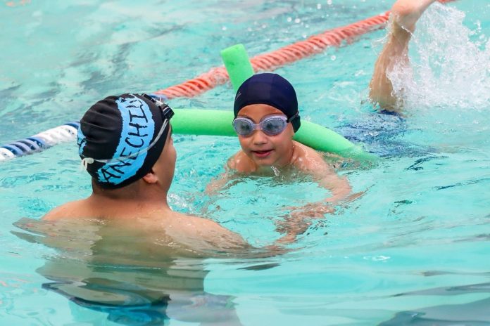 Delicias.- El Instituto Municipal del Deporte y la Juventud (INMUDEJ) en Delicias, en coordinación con la Academia de Natación Vencedores, inició un curso intensivo de natación para niñas y niños, que se estará desarrollando del 14 al 25 de abril en las instalaciones del Polideportivo Bicentenario.