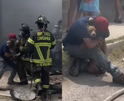 “Perdóname”: Hombre llora al encontrar a su perrita con vida tras incendio devastador en Chihuahua
