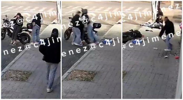 Según las imágenes captadas por cámaras de seguridad, un individuo vestido con gorra y chamarra negra se acercó a María Fernanda mientras su esposo, Mauricio, organizaba objetos en la parte trasera de su motocicleta.