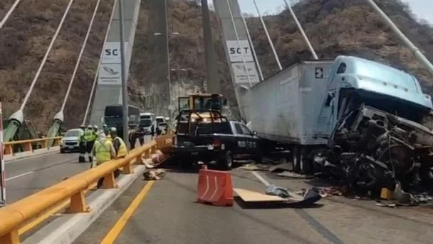El accidente se originó a la altura del kilómetro 156 de la llamada “súper carretera”, y causó su cierre de más allá de ocho horas en ambos carriles debido a que el vehículo pesado quedó atravesado justo a la mitad del puente en donde tenían el retén policiaco.