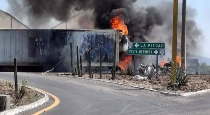 Las primeras quemas de vehículos para bloquear carreteras se registraron sobre la autopista de Occidente Morelia-Guadalajara, a la altura de los municipios de La Barca y Ocotlán, en el estado de Jalisco.