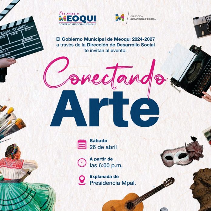 Meoqui.- En el marco del Día Mundial del Arte, el Gobierno Municipal de Meoqui llevará a cabo la actividad “Conectando Arte” este próximo sábado 26 de abril en punto de las 5:30 de la tarde, la cual reunirá distintas expresiones artísticas en los portales de la Presidencia Municipal, entre ellas presentaciones de música, danza, poesía, así como exposiciones de pintura, escultura y dibujo.