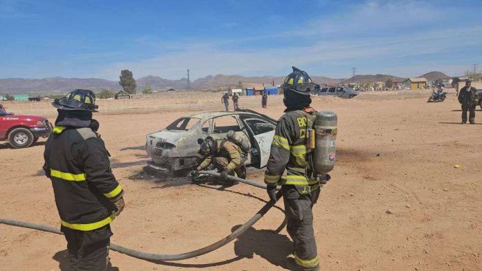 Chihuahua.- Un auto se incendió en su totalidad al exterior del panteón municipal número 4, ubicado en el camino a Carrizalillo.
