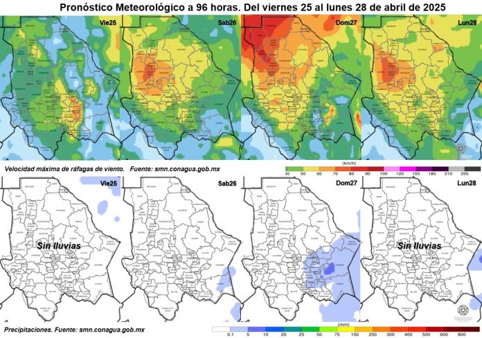 La dependencia indicó que para el sábado 26 de abril, se prevén ráfagas que superarán los 65 kilómetros por hora (km/h) en la mayor parte del estado.