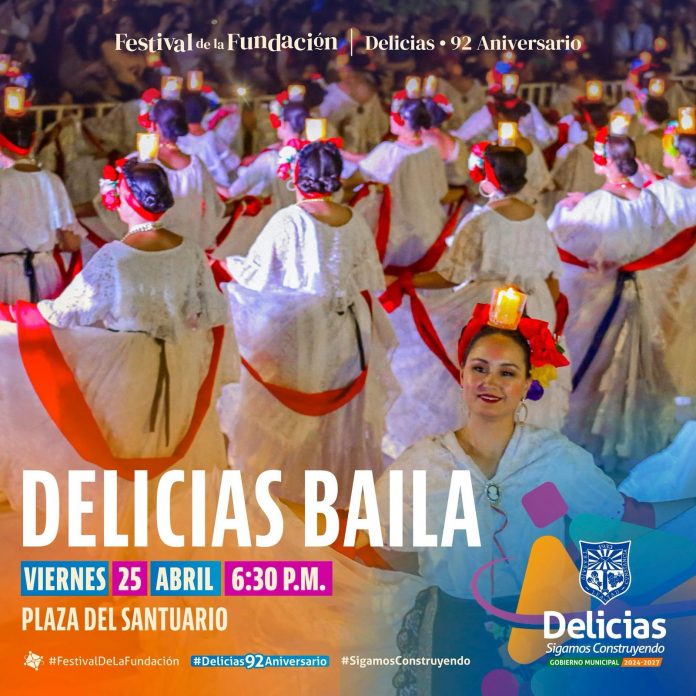 Delicias.- Como parte del Festival de la Fundación por el 92 aniversario de la ciudad, el Gobierno Municipal de Delicias invita a todas las familias a disfrutar del evento cultural “Delicias Baila”, este viernes 25 de abril a las 6:30 de la tarde en la Plaza del Santuario.