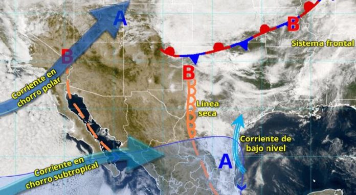 “Un frente frío se aproximará al noroeste de México”, interactuando con una vaguada en altura y la corriente en chorro polar, esto traerá al estado posibles tolvaneras el sábado 26 de abril y rachas de viento.