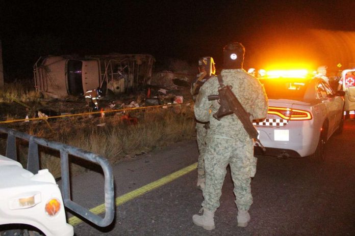 Chihuahua.- Un testigo de la volcadura del camión militar que ocurrió anoche en la rúa a Delicias, dejando saldo de un muerto y cinco lesionados, dijo que una mancha de aceite en la carpeta asfáltica pudo ser lo que ocasionó el accidente.