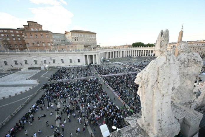 Varios miles de personas, entre fieles y curiosos, se congregan ya en la plaza de San Pedro del Vaticano poco después del comienzo del cónclave en el que se buscará al sucesor del papa Francisco, a la espera de la primera fumata.