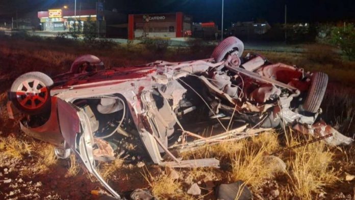Luego continuó su trayectoria y se impactó nuevamente, esta vez contra la ménsula de una señal tipo bandera ubicada sobre el terreno natural. Finalmente, giró hasta chocar con una base de concreto y volcó.