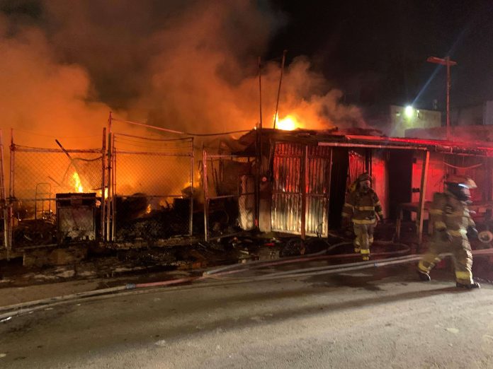 Ciudad Juárez.- Una mujer presuntamente ocasionó un incendio en unos locales comerciales la noche de ayer; el fuego dañó dos cámaras de la Plataforma Centinela y heridas por quemaduras en un hombre adulto.