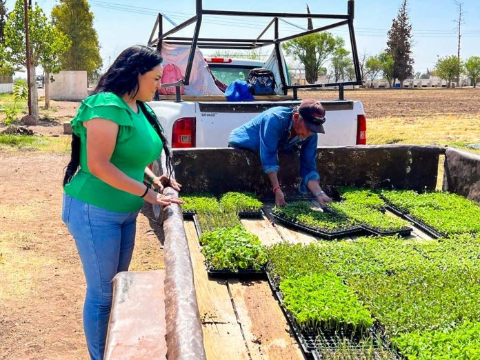 Meoqui.- Gracias a las gestiones de la alcaldesa de Meoqui Miriam Soto ante la Secretaría de Desarrollo Rural del Estado de Chihuahua, se llevó a cabo la donación de 30 charolas de plántulas al CBTA 147 y la Secundaria Técnica 21 de Lázaro Cárdenas, cada una con 200 plantas de diversas variedades como pepino, chile jalapeño, chile chilaca, tomate, cebolla y melón.