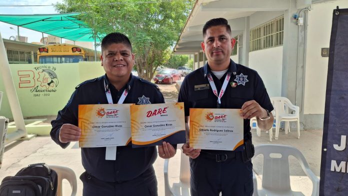 Ambos elementos participaron en el Congreso D.A.R.E LATAM en Mexicali, Baja California, el pasado mes de abril, el cual tuvo como objetivo ofrecer capacitación a instructores sobre los temas clave antes mencionados, mismos que estarán impartiendo el próximo viernes a elementos de las DSPM de Chihuahua, Camargo, Cuauhtémoc, Saucillo, Delicias y Rosales.