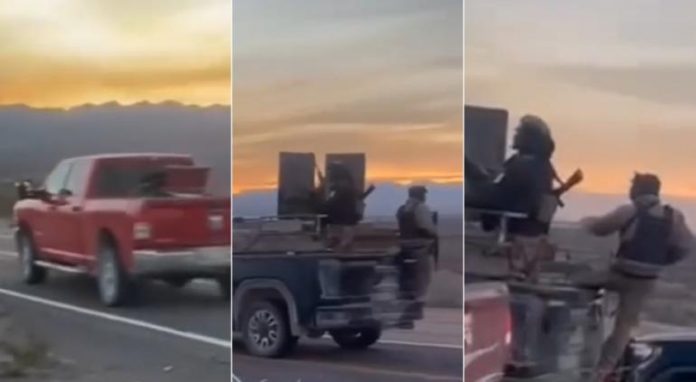 Luego de esto, comenzó a difundirse un video con marca de agua, en donde se apreció más de cerca a los sicarios que mantenían este narcoretén, con pick ups y camionetas. Una de ellas artillada, modificación utilizada para contar con capacidad ofensiva, también conocidos como vehículos “monstruo”.