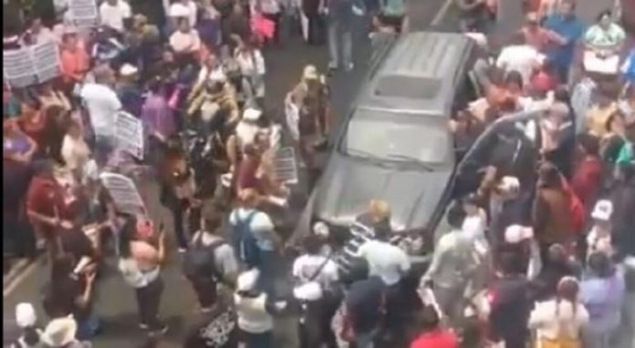 El conductor intentó avanzar, atropellando a varios de los manifestantes, por lo que otras personas decidieron rodear el auto, detenerlo y retenerlo, golpeando los vidrios exigiendo al hombre que saliera.
