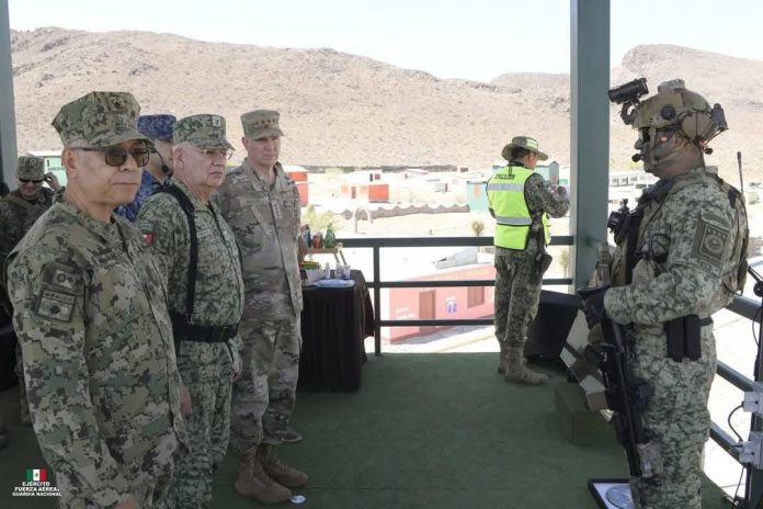 En esta reunión, tuvieron la posibilidad de presenciar el ejercicio final de adiestramiento conjunto con efectivos del Ejército, Fuerza Aérea, Armada y Guardia Nacional de México.