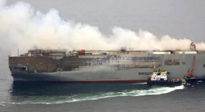 El carguero identificado como “Morning Midas” transportaba aproximadamente tres mil autos normales y cerca de 800 autos eléctricos, todos fabricados en China y había zarpado del puerto de Yantai el 3 de mayo.
