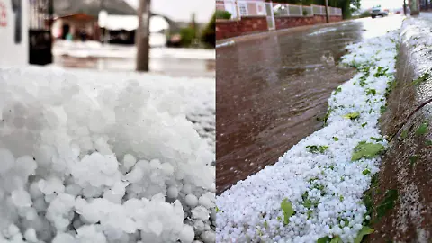 La primera fase de la caída de granizo fue por alrededor de 25 minutos, para luego transformarse en una ligera lluvia que minutos después volvió a cambiar a granizo con dimensiones más pequeñas de hielo.