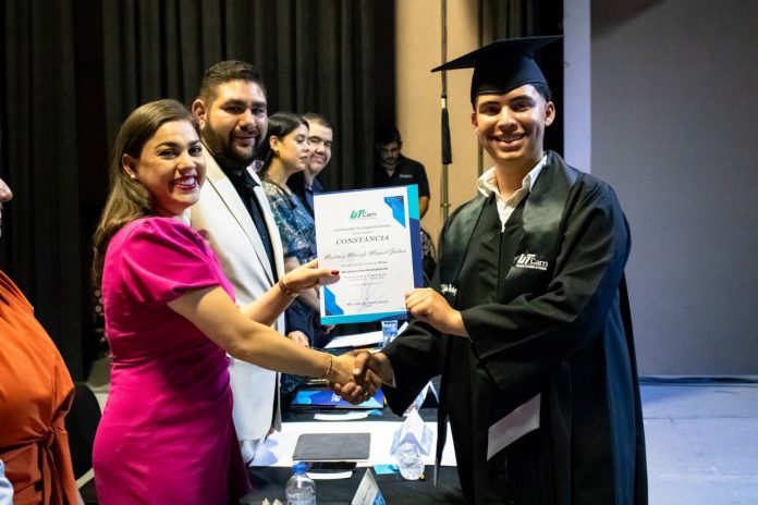 Meoqui.- “No solo es la entrega de un documento, si no es tener personas preparadas, pro activas y con conocimiento al servicio de los demás y sabemos que pondrán el nombre de Meoqui muy en alto”, así lo dijo la alcaldesa de Meoqui Miriam Soto, durante la Ceremonia de Graduación de la Universidad Tecnológica de Camargo Unidad Meoqui, donde más de 40 alumnos, concluyeron su educación superior.