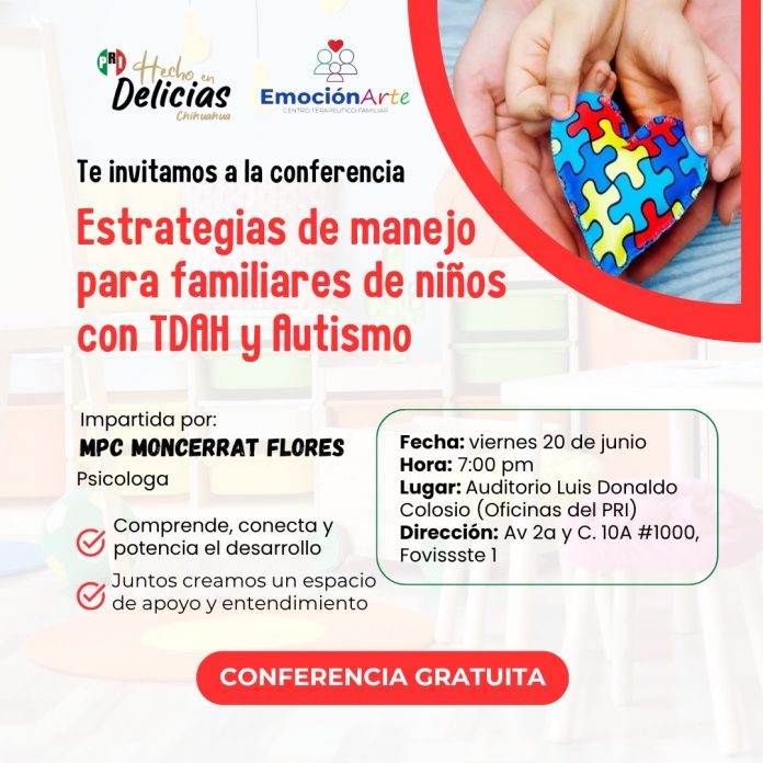Este viernes, 20 de junio de 2025, a las 7:00 p.m., las instalaciones del PRI serán la sede de la conferencia “Estrategias de manejo para familiares con TDAH y autismo”.