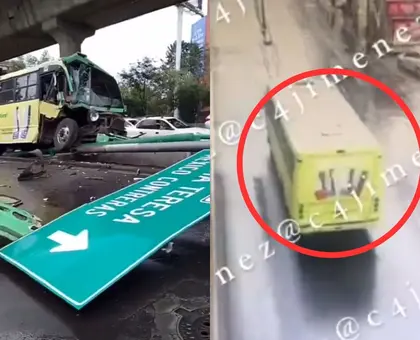 El reportero especializado en temas policiacos, Carlos Jiménez, compartió a través de sus redes sociales el momento exacto del choque entre un camión de pasajeros y la aguja de incorporación a carriles centrales.