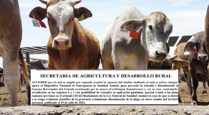 Publicó el Diario Oficial de la Federación (DOF) el acuerdo que por segunda ocasión amplía el Dispositivo Nacional de Emergencia de Sanidad Animal contra el gusano barrenador.
