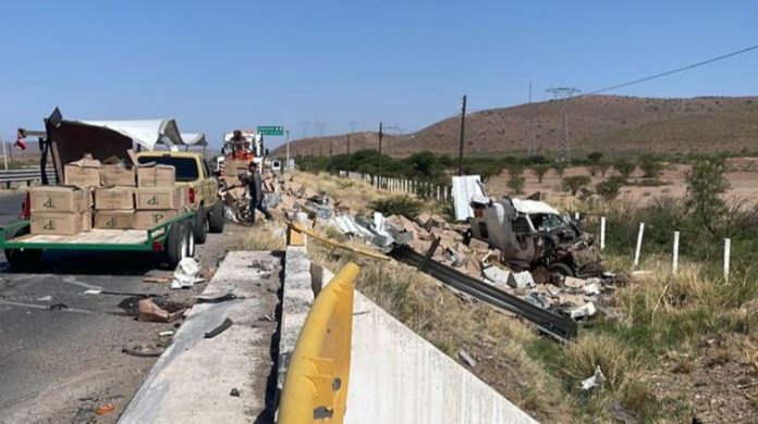 Delicias.- Un aparatoso accidente se registró esta mañana en la carretera Delicias-Chihuahua, involucrando un trailer y un vehículo particular. El incidente resultó en una persona lesionada y cuantiosos daños materiales.
