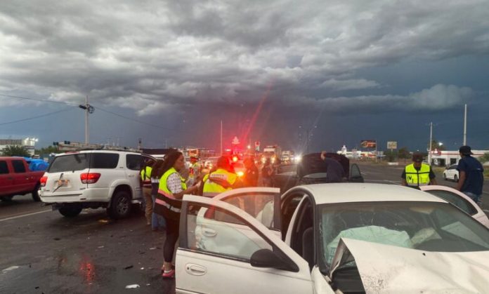 Meoqui.- Un fuerte accidente se registró la tarde del domingo en la carretera federal número 45, a la altura del puente del seccional de Lázaro Cárdenas, en Meoqui. Dos vehículos colisionaron, dejando como saldo una menor de edad lesionada.