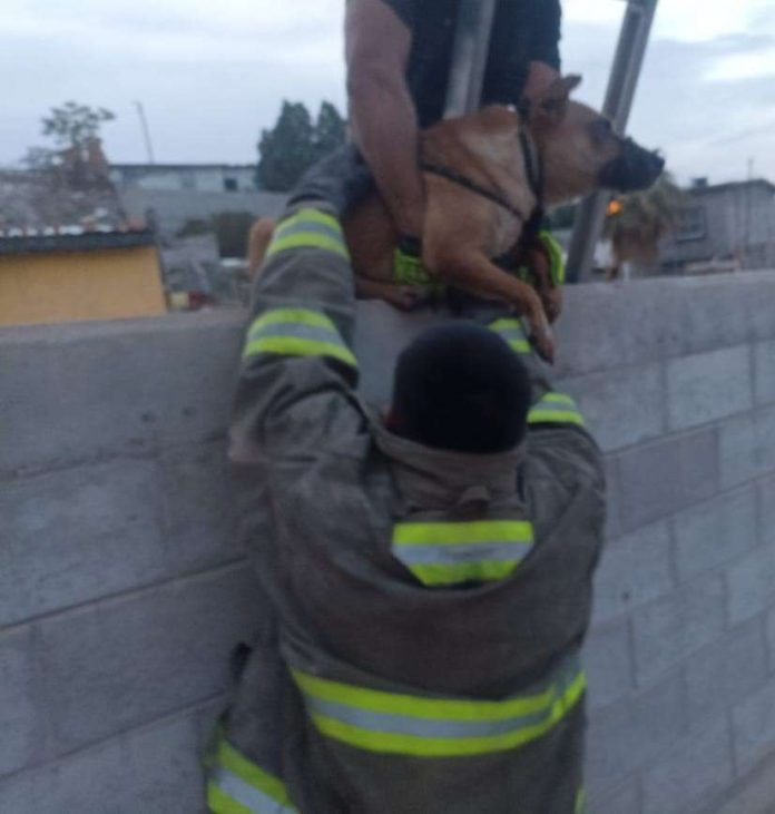 Ciudad Juárez.- Elementos de la Dirección General de Protección Civil protagonizaron un emotivo rescate al salvar a un perro que se encontraba atrapado en un canal de agua pluvial en la colonia Azteca.