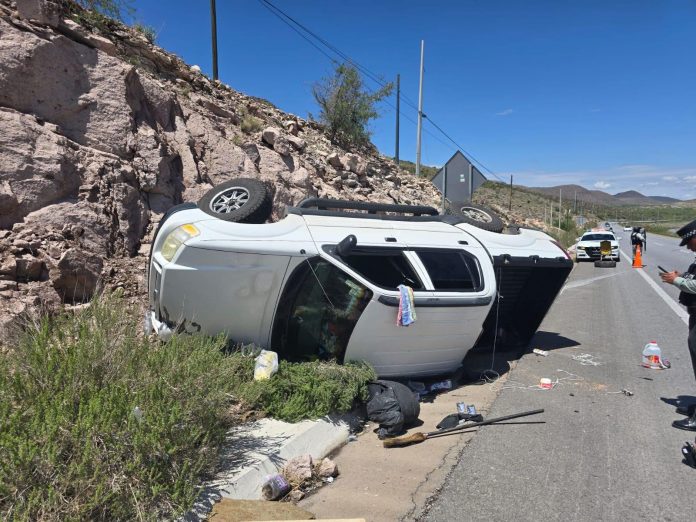 Delicias.- Un incidente vial se registró esta mañana de viernes en el kilómetro 181 de la carretera federal Chihuahua-Delicias, en el tramo norte-sur. Una camioneta Ford blanca, modelo 2000, con placas VE-04-066 del estado de Tabasco, volcó después de que, según el conductor, se le salió un neumático.