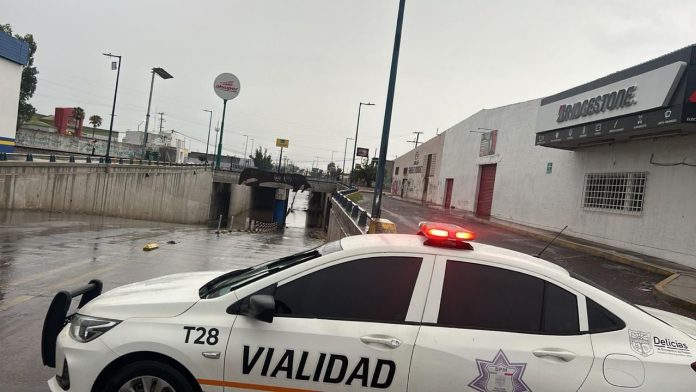 Delicias.- Refuerzan cierres viales y operativos preventivos ante las lluvias registradas en la ciudad, informó Erick Rodríguez, titular de la Subdirección de Vialidad, quien detalló que se mantiene especial vigilancia en puntos de riesgo como el paso inferior o paso suprimido.