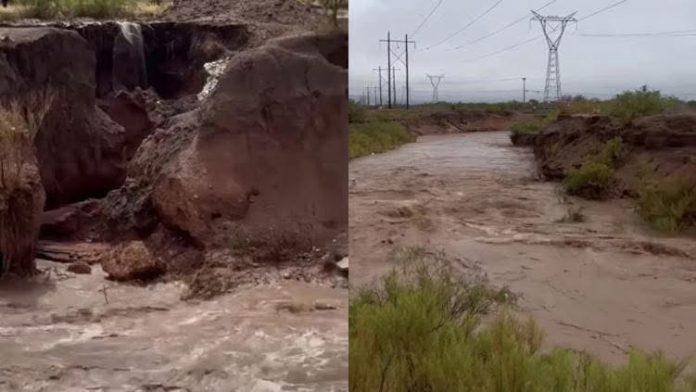 Chihuahua.- Por medio de redes sociales, usuarios compartieron cómo se ve el cauce del arroyo que pasa entre Sierra Azul y Urbi Villas tras las lluvias que se han presentado desde hace más de una semana en el Municipio de Chihuahua.