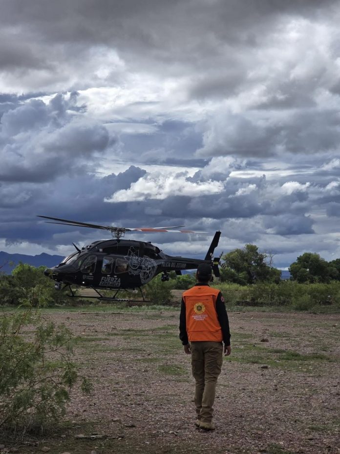 Chihuahua.- En una acción conjunta derivada de las intensas lluvias registradas en las últimas horas, la Coordinación Estatal de Protección Civil (CEPC) encabezó este miércoles un operativo de rescate aéreo en la comunidad de Lagos Campestre, en el municipio de Aldama, derivado a que 5 personas del sexo masculino habían quedado incomunicadas por el desbordamiento de un arroyo.